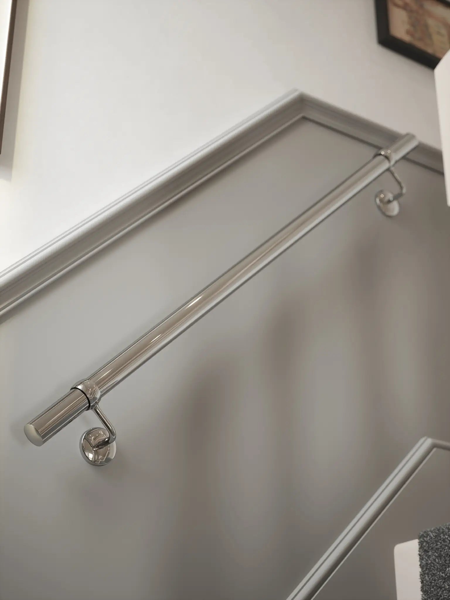Let your handrail shine with Radway Chrome. This modular handrail system is designed for staircases with floor-to-floor heights up to 2800mm, delivering a mirror-like finish that reflects light and elevates the look of your hallway or landing.